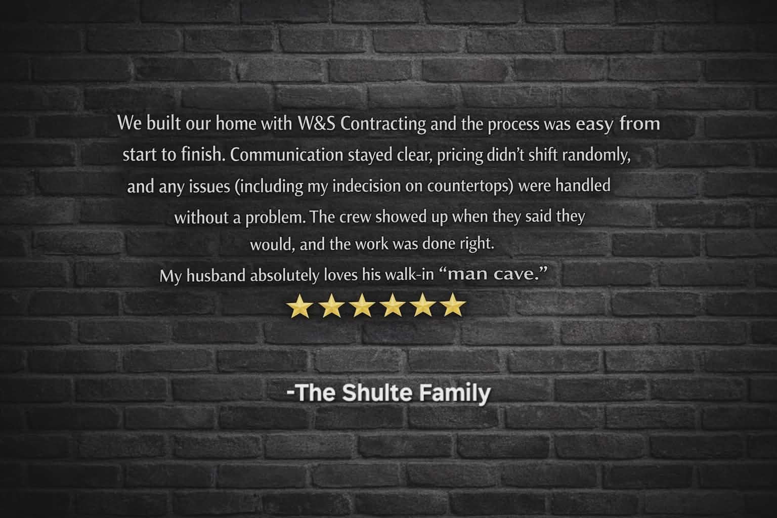 At W&S Contracting, integrity isn’t a slogan — it’s a standard. We price projects transparently, communicate clearly, and treat every home as if we were building it for our own family. Our clients know exactly where their project stands and what to expect at every stage of the build.What truly sets us apart is our personal involvement in each project.